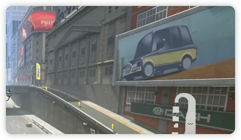 此外,还有一幅广告展示了一辆造型怪异的汽车,车窗异常巨大,整体风格也被部分玩家认为颇具AI图像特有的“失真感”。