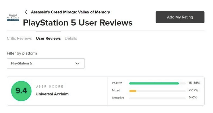 在评分网站Metacritic上,《回忆山谷》DLC的PS5版目前收获了玩家平均评分9.4分(满分10分),这一成绩显示了玩家对这款更新的高度认可。