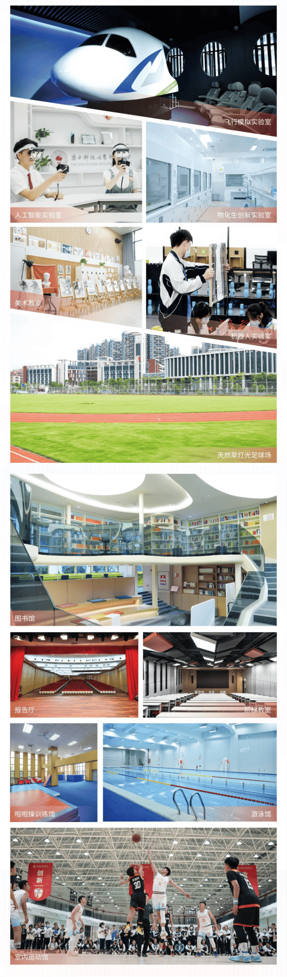 飞行模拟实验室、人工智能实验室、机器人实验室、通用技术实验室、创新实验室、室内体育馆、天然草灯光足球场、啦啦操馆、音乐、舞蹈和美术教室、图书馆……学校为学生高水平学习和高品质生活提供绝佳体验。