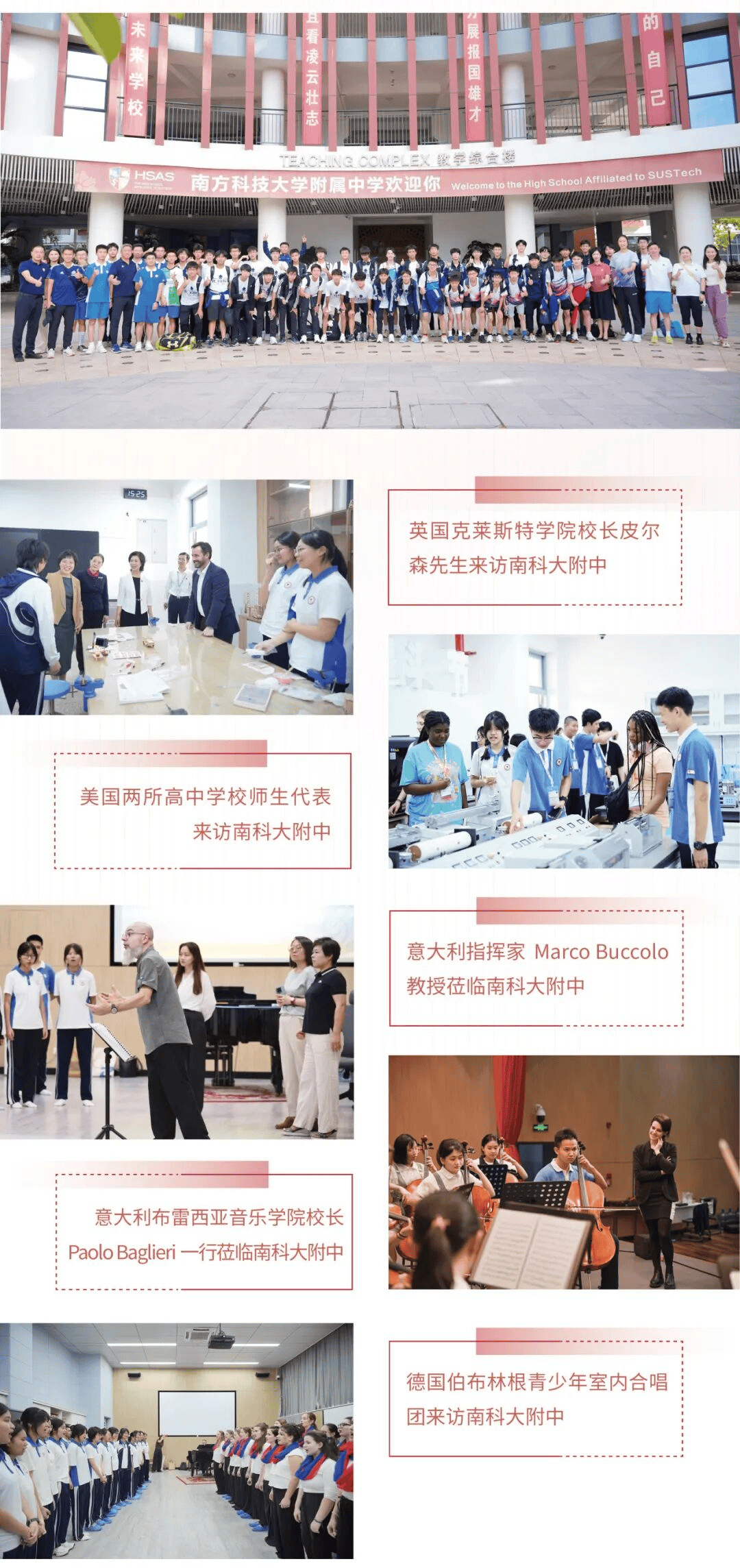 在南科大附中读书,学校希望学子们能“心怀天下”。学子们可参与或与友好学校联合开展亚洲青年华语论坛、计算科学论坛、大湾区之旅云浸濡活动、大湾区科技浸濡之旅线下交流活动、国际青年科学论坛暨诺贝尔奖得主座谈会等24次前沿活动,在国际化的高端平台上历练成长。