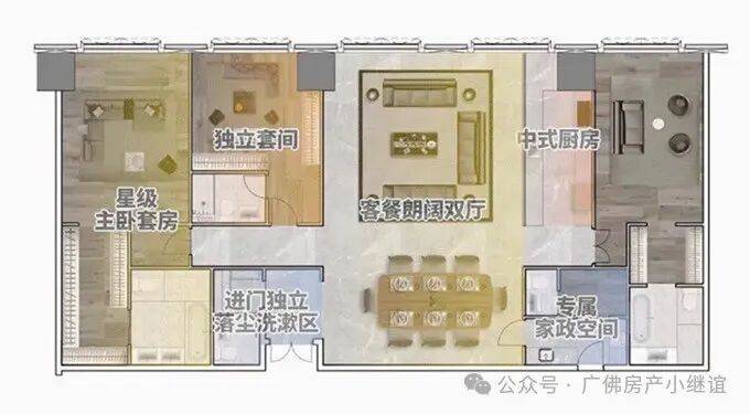 建面约654㎡户型,约150㎡L型LDK超大公区,链接餐厅、露台,展现世家尊荣的气度,全南向IMAX环幕视野,无遮挡直面珠水,把江岸纳为私藏。
