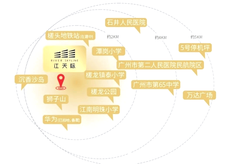 江天际楼下即地铁13号线号线(在建)交汇的槎头站,未来还将接入佛山8号线(规划中),形成“三轨交汇”的交通枢纽。