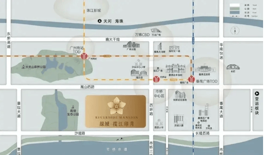 绿城揽江印月精准选址广州市番禺区沙头街禺山大道南侧STJ15-02地块,地处大夫山森林公园和市桥板块的交汇地带,地理位置优越,兼具生态宜居与城市便利双重优势。