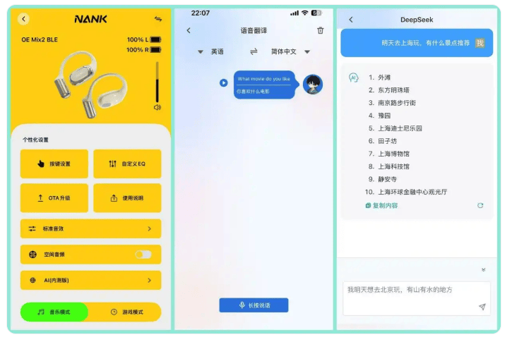 而全新的OE Pro2不仅是音质标杆,更整合了讯飞×DeepSeek全栈智慧系统,覆盖翻译、对话、助手、搜索、创作等数十项功能,让耳机成为学习与娱乐的全能伙伴,凭借“全能Ai助手+发烧音质”的双核驱动,南卡OE Pro2实现了对同价位竞品的全面碾压,成为行业爆火的旗舰之选。