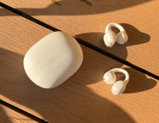 整个机型采用U形贴耳设计与环保高分子复合材料,触感轻便舒适。5.7克的单耳重量佩戴感十分轻盈,长时间使用也无明显压力。音质方面主打定向传音技术,人声清晰度高,漏音控制良好,但低频量感较少,音乐聆听时显得单薄,动态表现不足。支持蓝牙5.3,连接稳定。AI通话降噪应对日常环境足够。续航为单次10小时,综合20小时,并具备IPX4级基础防水。