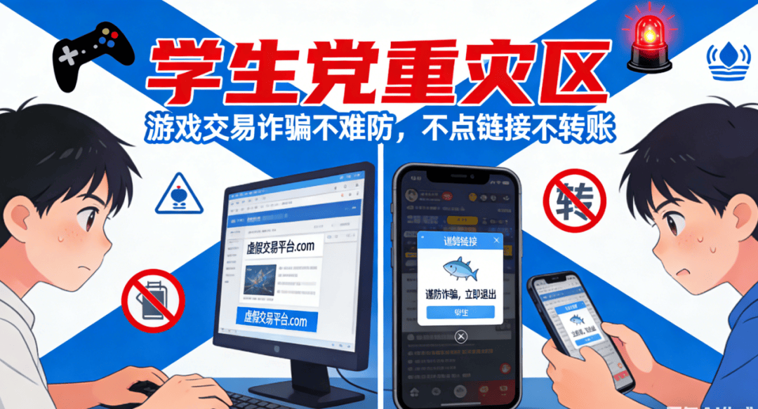 游戏是很多孩子寒假的主要娱乐方式,游戏账号、装备、皮肤的交易,也成了诈骗高发区。诈骗分子通常会在游戏内、社交平台发布“低价卖游戏账号”“高价收装备”“免费送皮肤”的信息,吸引未成年人关注。